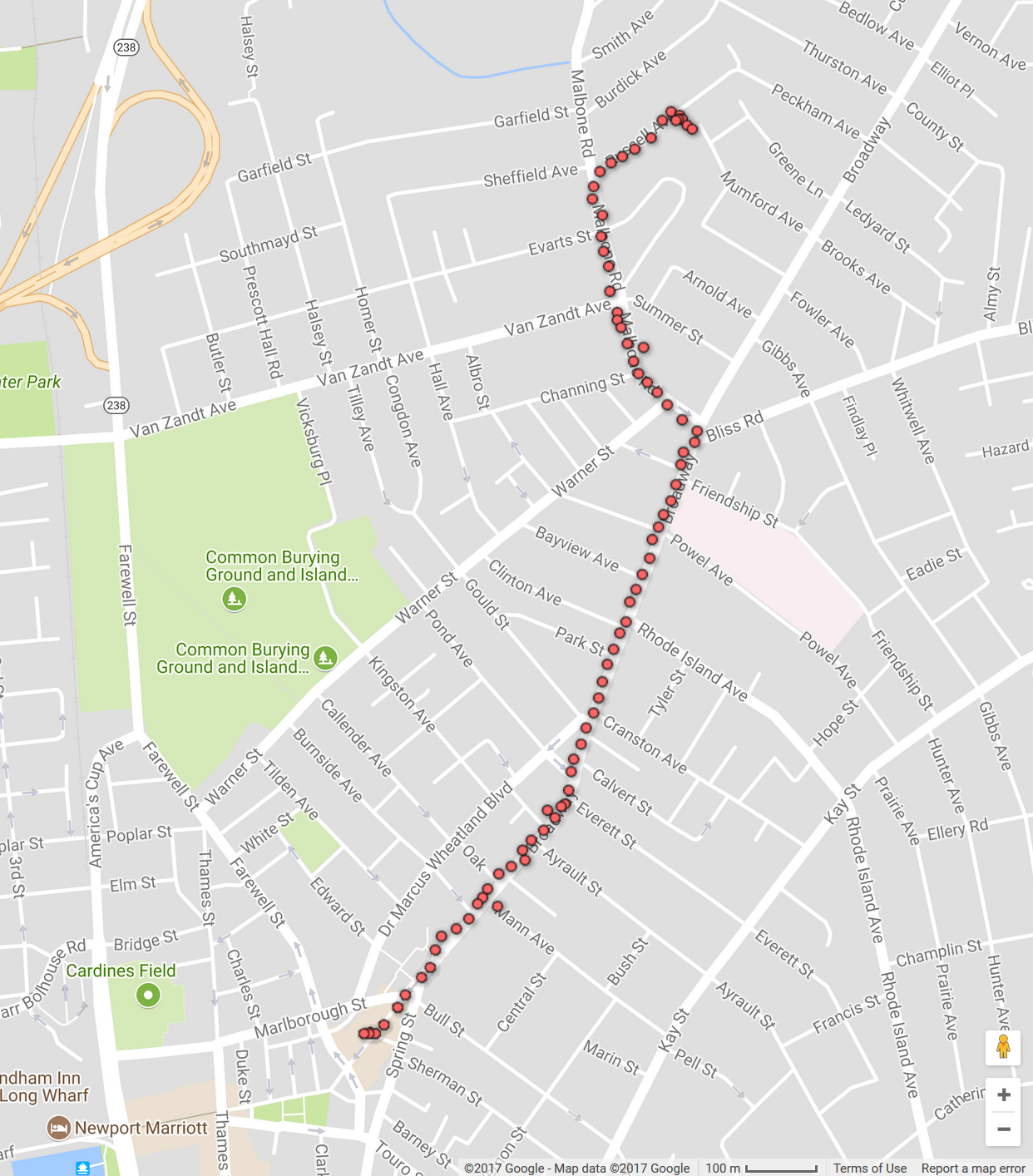 This document follows the question "Where are the sidewalks?", taken from real-world, day-to-day experience through the steps to find, collect, and analyze the data to answer it. This is the approach we try to use in the Newport Data Project. Hopefully you were able to follow along to see how the walks around the city turned into the map above. This example only scratched the surface - there are more questions to ask like "Can people walk safely where they need to go?", and "Are these sidewalks accessible to everyone?" We just need to follow the same process with these new questions.